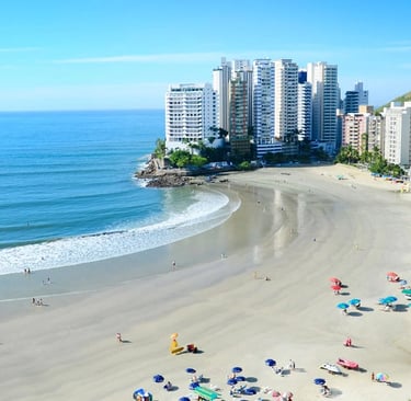 Praia das Astúrias: Praia urbana com águas calmas, boa para famílias e com ótima infraestrutura.